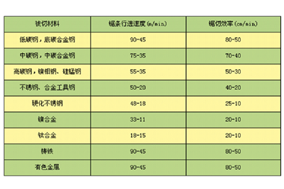 2.鋸削速(sù)度及鋸(jù)切效率(lü)建議參(cān)考表