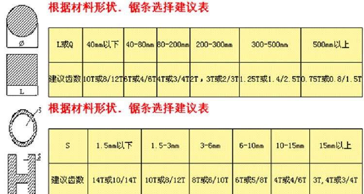 3.鋸(ju)條選擇(ze)建議表(biao)